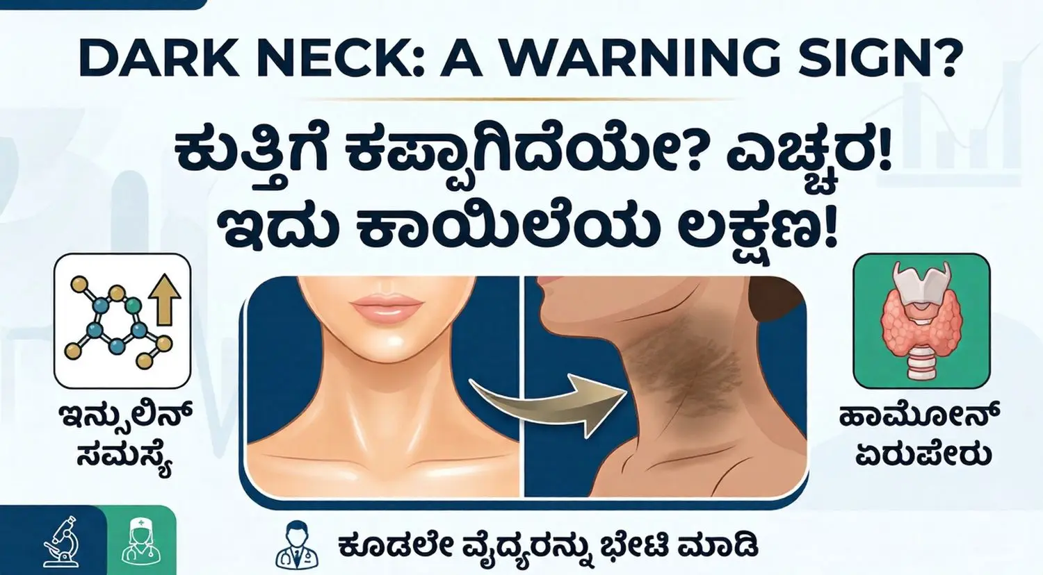 ವೈದ್ಯಕೀಯ ತಪಾಸಣೆ: ಒಂದು ವೇಳೆ ತೂಕ ಹೆಚ್ಚಳ ಅಥವಾ ಅತಿಯಾದ ಆಯಾಸದೊಂದಿಗೆ ಕುತ್ತಿಗೆ ಕಪ್ಪಾಗುತ್ತಿದ್ದರೆ, ತಕ್ಷಣ ರಕ್ತ ಪರೀಕ್ಷೆ ಮಾಡಿಸಿಕೊಳ್ಳುವುದು ಉತ್ತಮ.