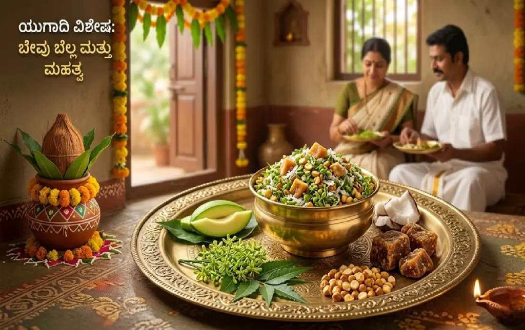 ಚೈತ್ರ ಮಾಸದ ಮೊದಲ ದಿನ ಆಚರಿಸಲಾಗುವ ಯುಗಾದಿ ಹಬ್ಬವು ಕನ್ನಡಿಗರ ಪಾಲಿಗೆ ಹೊಸ ವರ್ಷದ ಸಂಭ್ರಮ. ಪ್ರಕೃತಿಯಲ್ಲಿ ಹೊಸ ಚಿಗುರು ಮೂಡುವ ಈ ಸಮಯದಲ್ಲಿ ಜೀವನದ ಸಾರವನ್ನು ಸಾರುವ ‘ಬೇವು-ಬೆಲ್ಲ’ ವಿತರಣೆ ಮಾಡುವುದು ಅತಿ ಮುಖ್ಯ ಸಂಪ್ರದಾಯವಾಗಿದೆ. ಜೀವನ ಎಂದರೆ ಕೇವಲ ಸುಖವಲ್ಲ, ಅದು ಕಷ್ಟ ಮತ್ತು ಸುಖಗಳ ಸಮ್ಮಿಶ್ರಣ ಎಂಬುದನ್ನು ಈ ಪ್ರಸಾದ ನಮಗೆ ನೆನಪಿಸುತ್ತದೆ.