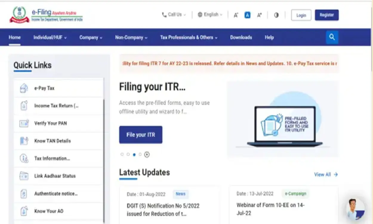 ಆದಾಯ ತೆರಿಗೆ ಇಲಾಖೆಯ ಅಧಿಕೃತ ವೆಬ್‌ಸೈಟ್ www.incometax.gov.in ಗೆ ಲಾಗ್ ಇನ್ ಮಾಡಿ.