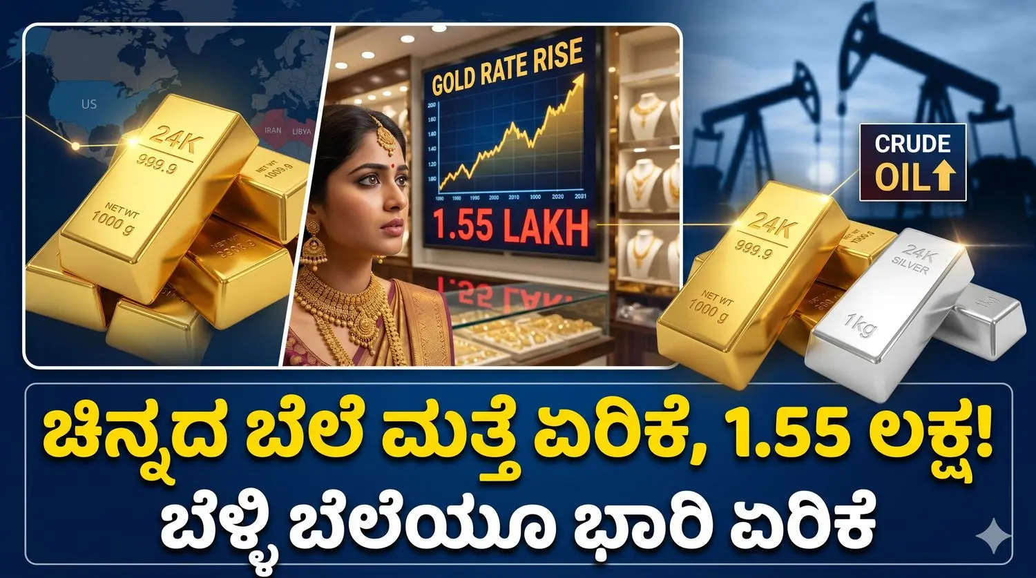 Gold Rate Rise: ಚಿನ್ನದ ಬೆಲೆ ಮತ್ತೆ ಏರಿಕೆ, 1.55 ಲಕ್ಷ ರೂಪಾಯಿಗೇರಿದ ಚಿನ್ನದ ಬೆಲೆ: ಬೆಳ್ಳಿ ಬೆಲೆಯೂ ಭಾರಿ ಏರಿಕೆ