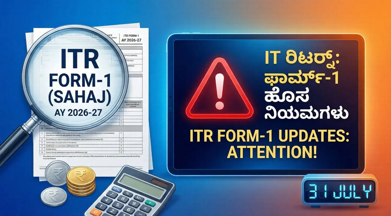 ಬೆಂಗಳೂರು: ಕೇಂದ್ರ ಸರ್ಕಾರವು 2025-26ರ ಹಣಕಾಸು ವರ್ಷಕ್ಕೆ (ಅಸೆಸ್ಮೆಂಟ್ ವರ್ಷ 2026-27) ಸಂಬಂಧಿಸಿದಂತೆ ಆದಾಯ ತೆರಿಗೆ ರಿಟರ್ನ್ (ITR) ಫಾರ್ಮ್ಗಳಲ್ಲಿ ಮಹತ್ವದ ಬದಲಾವಣೆಗಳನ್ನು ಮಾಡಿದೆ. ಏಪ್ರಿಲ್ 1, 2026 ರಿಂದ ಜಾರಿಗೆ ಬಂದಿರುವ ಹೊಸ ಆದಾಯ ತೆರಿಗೆ ಕಾಯ್ದೆಯನ್ವಯ, ಸಣ್ಣ ತೆರಿಗೆದಾರರು ಬಳಸುವ ಫಾರ್ಮ್-1 (ಸಹಜ್) ನಲ್ಲಿ ಕೆಲವು ಪ್ರಮುಖ ವಿನಾಯಿತಿ ಮತ್ತು ಕಟ್ಟುನಿಟ್ಟಿನ ನಿಯಮಗಳನ್ನು ತರಲಾಗಿದೆ. ನೀವು ತೆರಿಗೆ ಸಲ್ಲಿಸುವ ಮುನ್ನ ಈ ಕೆಳಗಿನ ಬದಲಾವಣೆಗಳನ್ನು ಗಮನಿಸದಿದ್ದರೆ ಆದಾಯ ತೆರಿಗೆ ಇಲಾಖೆಯಿಂದ ನೋಟಿಸ್ ಪಡೆಯುವ ಸಾಧ್ಯತೆ ಇರುತ್ತದೆ.