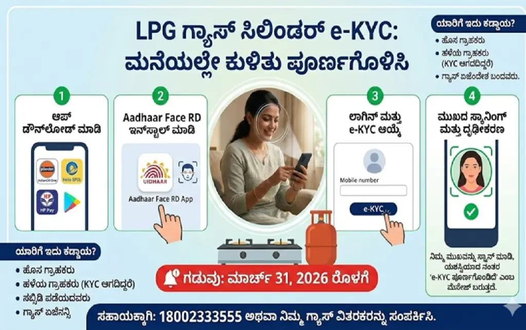 ತೈಲ ಕಂಪನಿಗಳ ಪ್ರಕಾರ, ಮಾರ್ಚ್ 31, 2026 ರೊಳಗೆ ಇ-ಕೆವೈಸಿ ಪೂರ್ಣಗೊಳಿಸುವುದು ಅವಶ್ಯಕ. - ಮೊಬೈಲ್ನಲ್ಲಿ ಇ-ಕೆವೈಸಿ ಮಾಡಲು ಯಾವ ಆಪ್ ಬೇಕು?
