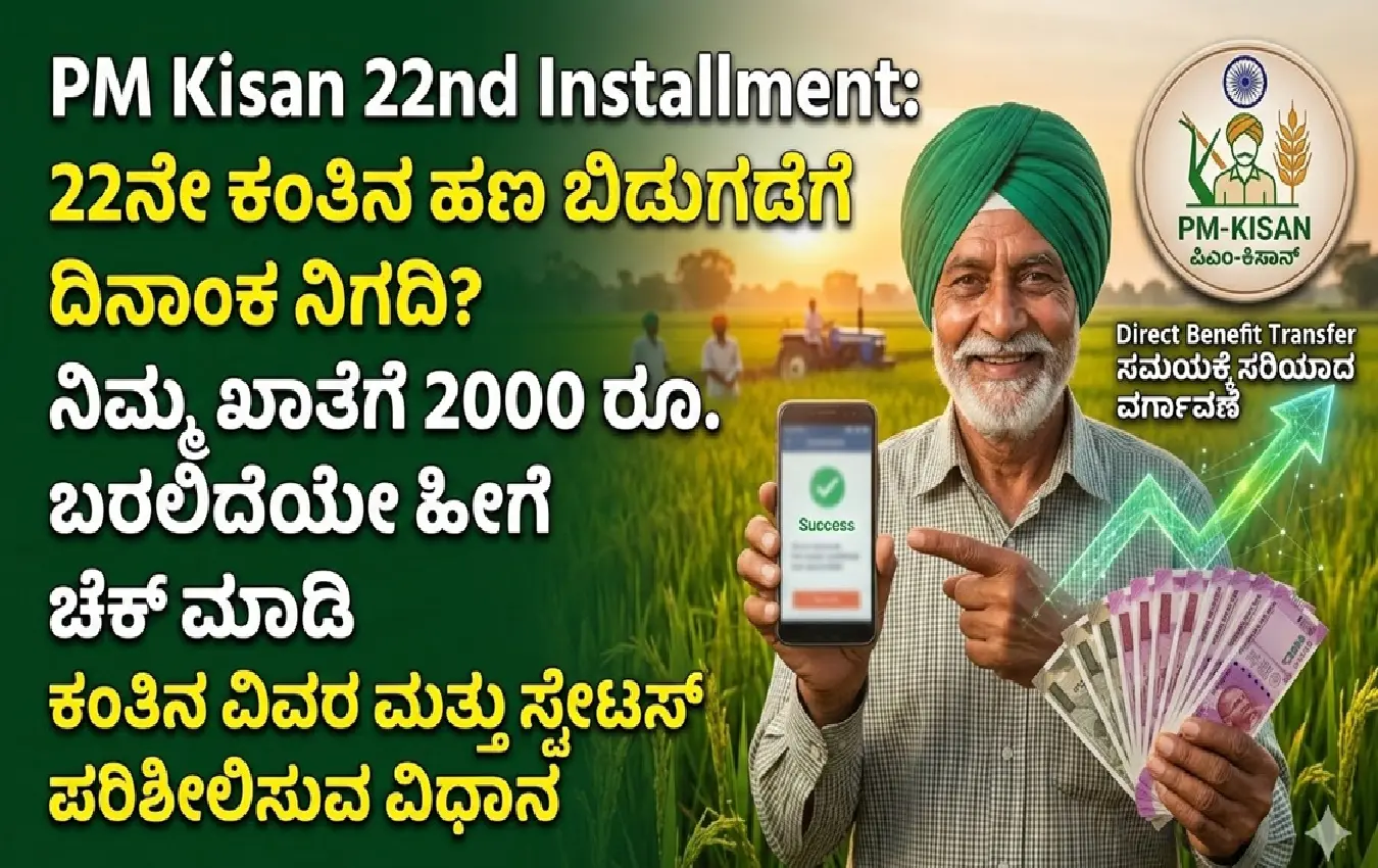 ಪ್ರಧಾನ ಮಂತ್ರಿ ಕಿಸಾನ್ ಸಮ್ಮಾನ್ ನಿಧಿ ಯೋಜನೆಯ 22ನೇ ಕಂತಿನ ಹಣ ಬಿಡುಗಡೆ ಮಾಹಿತಿ.