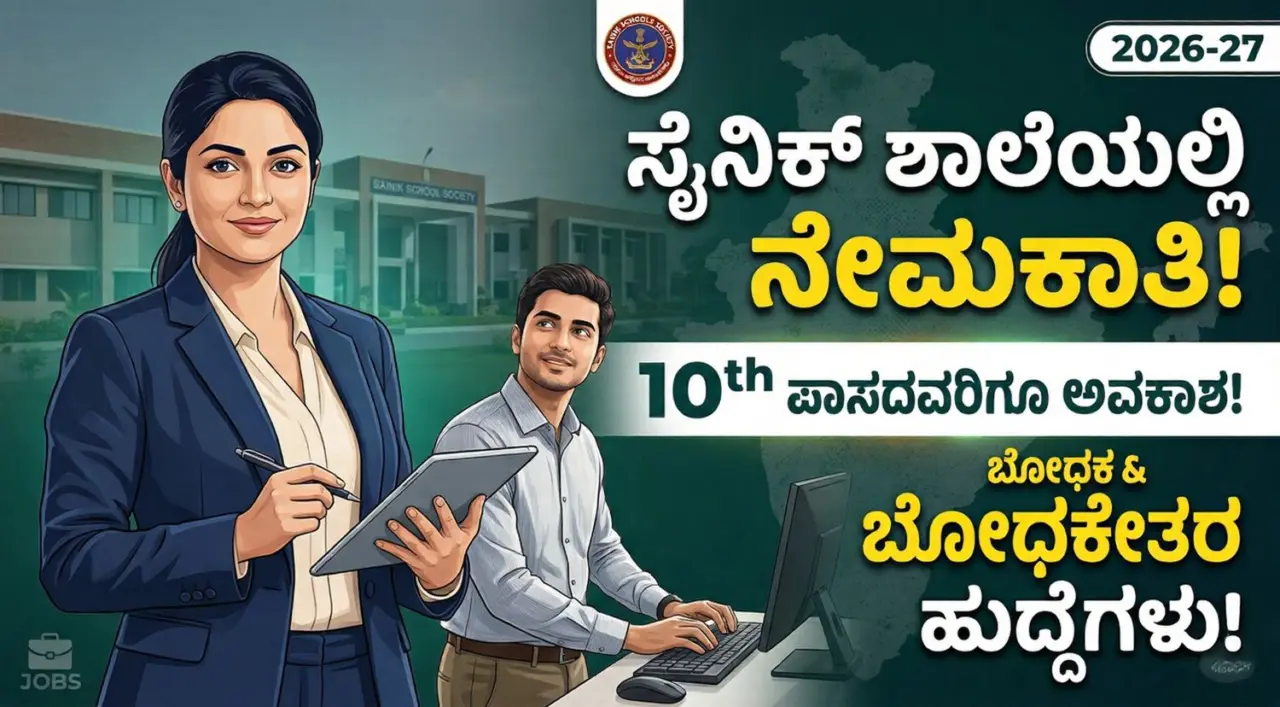 ನೀವು ಶಿಕ್ಷಣ ಕ್ಷೇತ್ರದಲ್ಲಿ ಅಥವಾ ಆಡಳಿತಾತ್ಮಕ ವಿಭಾಗದಲ್ಲಿ ಗೌರವಾನ್ವಿತ ವೃತ್ತಿಜೀವನವನ್ನು ರೂಪಿಸಿಕೊಳ್ಳಲು ಬಯಸುತ್ತಿದ್ದೀರಾ? ಹಾಗಿದ್ದಲ್ಲಿ, ಹರಿಯಾಣದ ರೇವಾರಿಯಲ್ಲಿರುವ ಸೈನಿಕ್ ಶಾಲೆಯು (Sainik School Rewari) ನಿಮಗಾಗಿ ಉತ್ತಮ ಅವಕಾಶವೊಂದನ್ನು ಹೊತ್ತು ತಂದಿದೆ. ಸೈನಿಕ್ ಶಾಲೆಯು 2026ನೇ ಸಾಲಿನ ವಿವಿಧ ಬೋಧಕ (Teaching) ಮತ್ತು ಬೋಧಕೇತರ (Non-Teaching) ಹುದ್ದೆಗಳ ಭರ್ತಿಗಾಗಿ ಅಧಿಕೃತ ಅಧಿಸೂಚನೆಯನ್ನು ಹೊರಡಿಸಿದೆ.