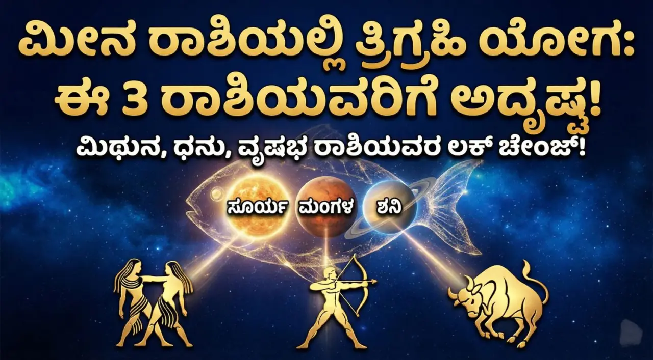 ವೈದಿಕ ಜ್ಯೋತಿಷ್ಯ ಶಾಸ್ತ್ರದ ಪ್ರಕಾರ, ಗ್ರಹಗಳ ಸಂಚಾರವು ಮಾನವ ಜೀವನದ ಮೇಲೆ ಗಾಢವಾದ ಪ್ರಭಾವ ಬೀರುತ್ತದೆ. ಇದೀಗ ಏಪ್ರಿಲ್ 2, 2026 ರಂದು ಒಂದು ಅಪರೂಪದ ಖಗೋಳ ಘಟನೆ ಸಂಭವಿಸುತ್ತಿದೆ. ಗ್ರಹಗಳ ರಾಜ ಸೂರ್ಯ ಮತ್ತು ಕರ್ಮಫಲದಾತ ಶನಿ ಈಗಾಗಲೇ ಮೀನ ರಾಶಿಯಲ್ಲಿದ್ದಾರೆ. ಇದೀಗ ಏಪ್ರಿಲ್ 2 ರಂದು ಮಧ್ಯಾಹ್ನ 3:59 ಕ್ಕೆ ಮಂಗಳ ಗ್ರಹವು ಮೀನ ರಾಶಿಯನ್ನು ಪ್ರವೇಶಿಸಲಿದೆ. ಇದರಿಂದಾಗಿ ಮೀನ ರಾಶಿಯಲ್ಲಿ ಸೂರ್ಯ, ಶನಿ ಮತ್ತು ಮಂಗಳ ಸೇರಿ ‘ತ್ರಿಗ್ರಹಿ ಯೋಗ’ ಅಥವಾ ಮೂರು ಗ್ರಹಗಳ ಸಂಯೋಜನೆ ಸೃಷ್ಟಿಯಾಗಲಿದೆ. ಈ ಪ್ರಭಾವಶಾಲಿ ಯೋಗವು ಏಪ್ರಿಲ್ 14 ರವರೆಗೆ ಸಕ್ರಿಯವಾಗಿರುತ್ತದೆ, ಏಕೆಂದರೆ ಅಂದು ಸೂರ್ಯನು ಮೇಷ ರಾಶಿಗೆ ಚಲಿಸುತ್ತಾನೆ. ಈ ಅವಧಿಯಲ್ಲಿ ವಿಶೇಷವಾಗಿ ಮೂರು ರಾಶಿಯವರಿಗೆ ವೃತ್ತಿ, ಆರ್ಥಿಕ ಮತ್ತು ವೈಯಕ್ತಿಕ ಜೀವನದಲ್ಲಿ ಅಭೂತಪೂರ್ವ ಯಶಸ್ಸು ಸಿಗಲಿದೆ.