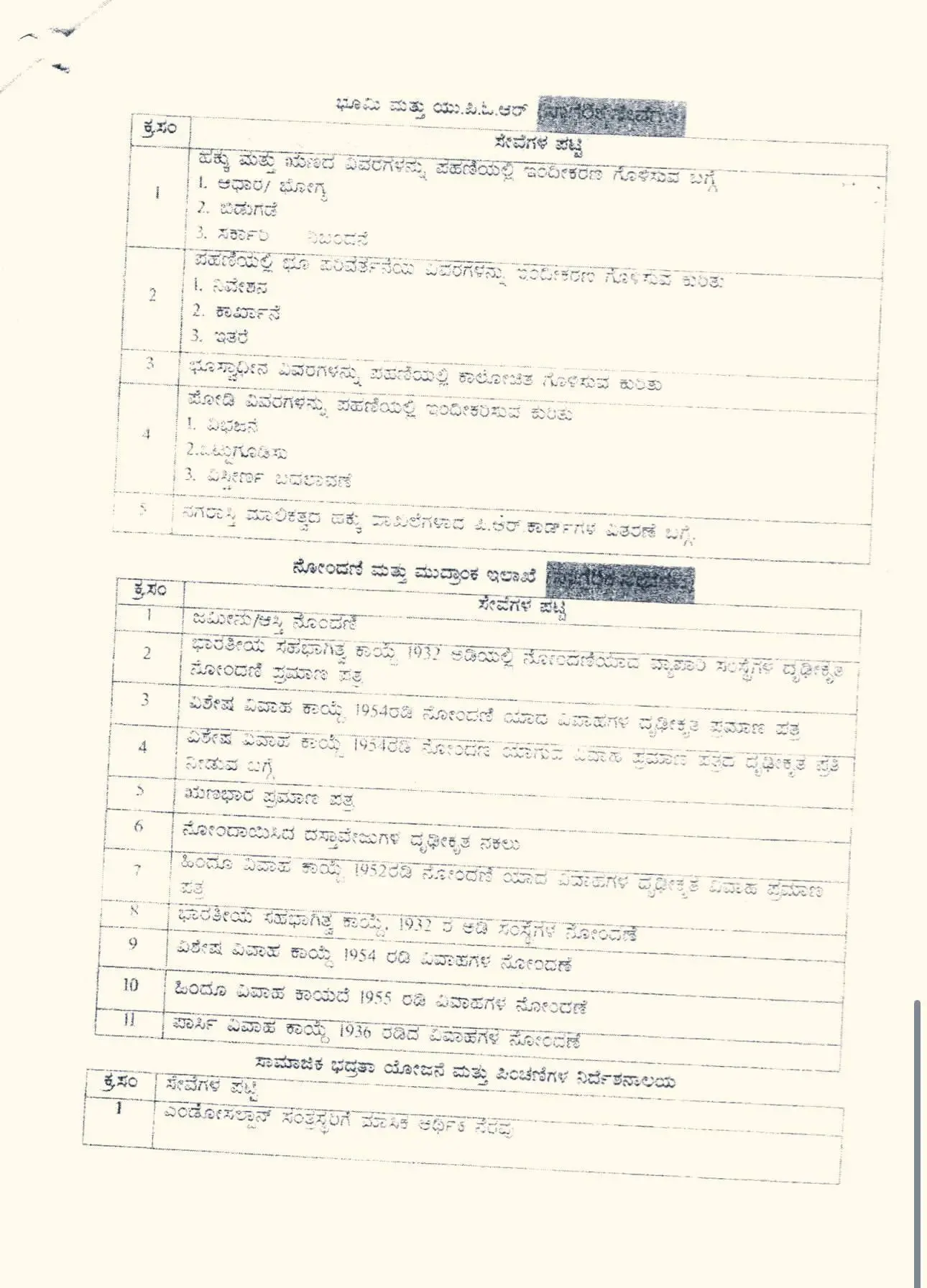 - ಎಲ್ಲಾ ವಿಧದ ಜಾತಿ ಪ್ರಮಾಣ ಪತ್ರಗಳು