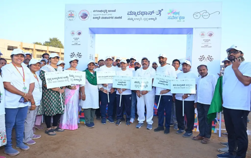 ನಗರದ ಡಾ.ರಾಜ್ ಕುಮಾರ್ ರಸ್ತೆಯ ಮುನಿಸಿಪಲ್ ಕಾಲೇಜು ಮೈದಾನದಲ್ಲಿ ಮಹಾನಗರ ಪಾಲಿಕೆಯಿಂದ 2025-26 ನೇ ಸಾಲಿಗೆ ನಮ್ಮ ಬಳ್ಳಾರಿ-ಸ್ವಚ್ಛ ಬಳ್ಳಾರಿ ಅಂಗವಾಗಿ ಶನಿವಾರ ಹಮ್ಮಿಕೊಂಡಿದ್ದ ಮ್ಯಾರಾಥಾನ್ಗೆ ಚಾಲನೆ ನೀಡಿ ಅವರು ಮಾತನಾಡಿದರು.ಸಾರ್ವಜನಿಕರು ಶಿಸ್ತುಬದ್ಧ ಜೀವನಶೈಲಿ ಅಳವಡಿಸಿಕೊಂಡಾಗ ಮಾತ್ರ ಸ್ವಚ್ಛ ಭಾರತ್ ಮಿಷನ್ ಗುರಿ ತಲುಪಲು ಸಾಧ್ಯ. ಬಹಿರ್ದೆಸೆ ಮುಕ್ತ ಭಾರತದ ಜೊತೆಗೆ ಸಂಪೂರ್ಣ ಸ್ವಚ್ಛ ಭಾರತದ ಗುರಿ ತಲುಪಲು ನಾವೆಲ್ಲರೂ ಕೈಜೋಡಿಸೋಣ ಎಂದು ಕರೆ ನೀಡಿದರು.