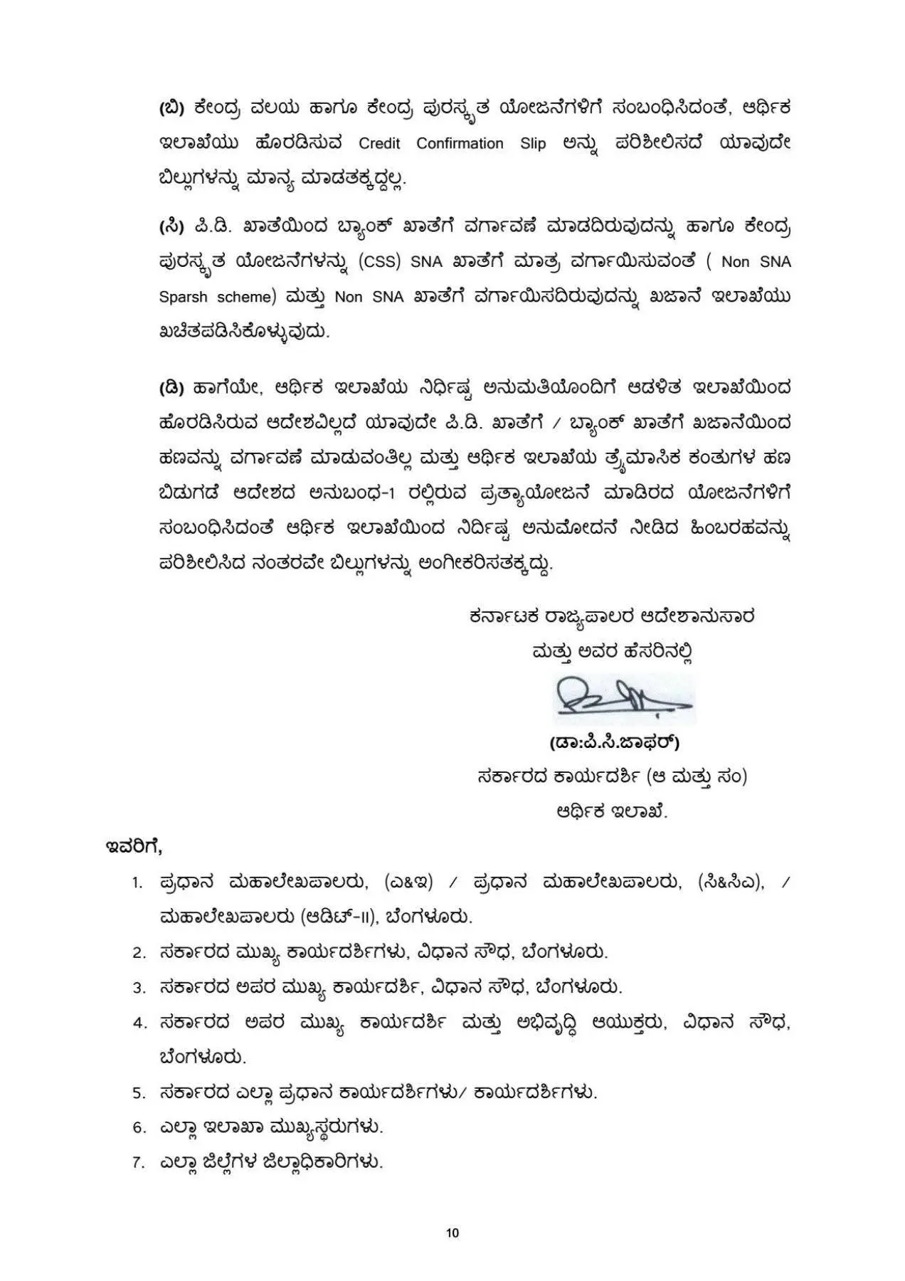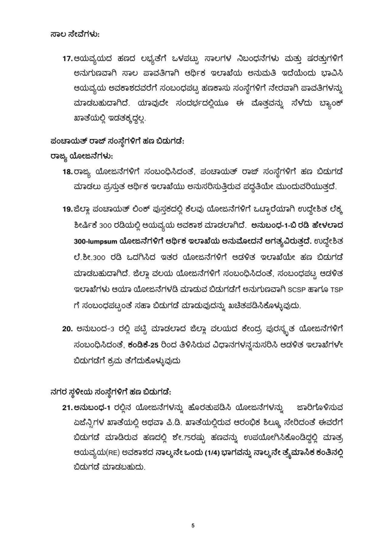 ಆಡಳಿತಾತ್ಮಕ ಅನುಮೋದನೆಯ ಆದೇಶವನ್ನು ಹಣ ಬಿಡುಗಡೆಯ ಆದೇಶವೆಂದು ಪರಿಭಾವಿಸತಕ್ಕದ್ದಲ್ಲ. ಅನುಮೋದನೆಯಾಗಿರುವ ವಿವಿಧ ಯೋಜನೆಗಳಿಗೆ ಅಧಿಕಾರ ಪ್ರತ್ಯಾಯೋಜನೆಯನ್ವಯ ಹಣ ಬಿಡುಗಡೆ ಮಾಡುವ ಬಗ್ಗೆ ಪ್ರತ್ಯೇಕ ಆದೇಶ ಹೊರಡಿಸಬೇಕಾಗುತ್ತದೆ. ಯಾವುದೇ ಯೋಜನೆಗೆ ಹಣ ಬಿಡುಗಡೆ ಮಾಡುವ ಮೊದಲು ಯೋಜನೆಯ ಮಾರ್ಗಸೂಚಿ, ಆಡಳಿತಾತ್ಮಕ ಅನುಮೋದನೆ, ಕ್ರಿಯಾ ಯೋಜನೆ ಪ್ರಕ್ರಿಯೆ ಮುಂತಾದ ಆಡಳಿತಾತ್ಮಕ ಪರಿಶೀಲನೆಗಳನ್ನು ಆಡಳಿತ ಇಲಾಖೆಯು ಪರಿಶೀಲಿಸತಕ್ಕದ್ದು.