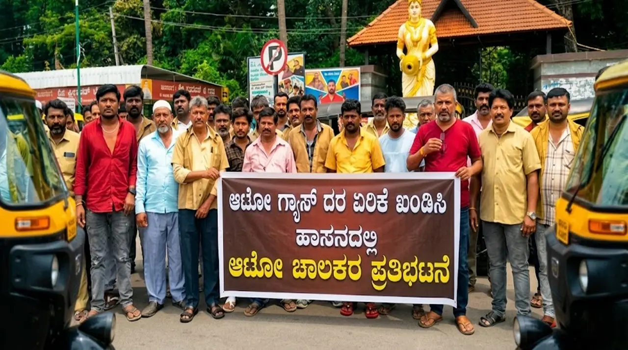 ಹಾಸನ : ಆಟೋ ಎಲ್‌ಪಿಜಿ ದರ ಏರಿಕೆ ವಿರುದ್ಧ ಚಾಲಕರ ಬೃಹತ್ ಪ್ರತಿಭಟನೆ ಮತ್ತು ಆಕ್ರೋಶ