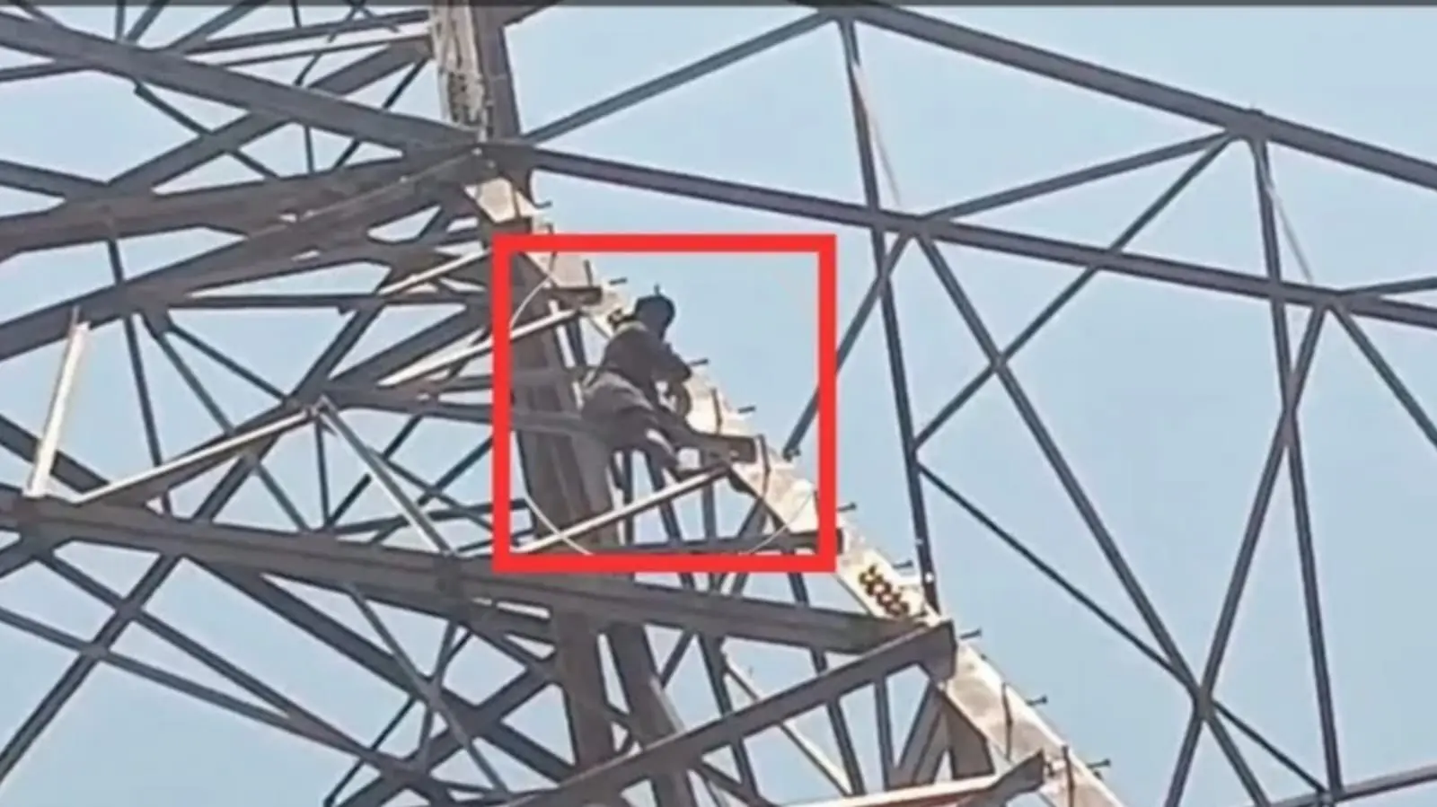 ಸುಮಾರು 400 ಮೀಟರ್ ಎತ್ತರದ ಹೈ ಟೆನ್ಷನ್ ವಿದ್ಯುತ್ ಕಂಬವನ್ನು ರೈತ ಏರಿದ್ದಾರೆ.