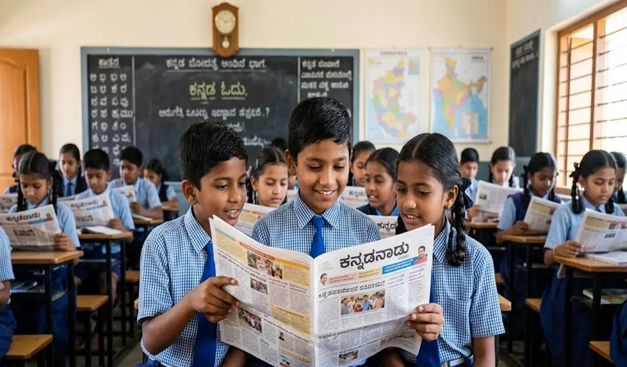 ![ಶಾಲಾ ತರಗತಿಯಲ್ಲಿ ಕನ್ನಡ ದಿನಪತ್ರಿಕೆ ಓದುತ್ತಿರುವ ಮಕ್ಕಳು [Students reading Kannada newspapers in classroom]](https://kannadanadu.com/wp-content/uploads/2026/04/01-3.webp)