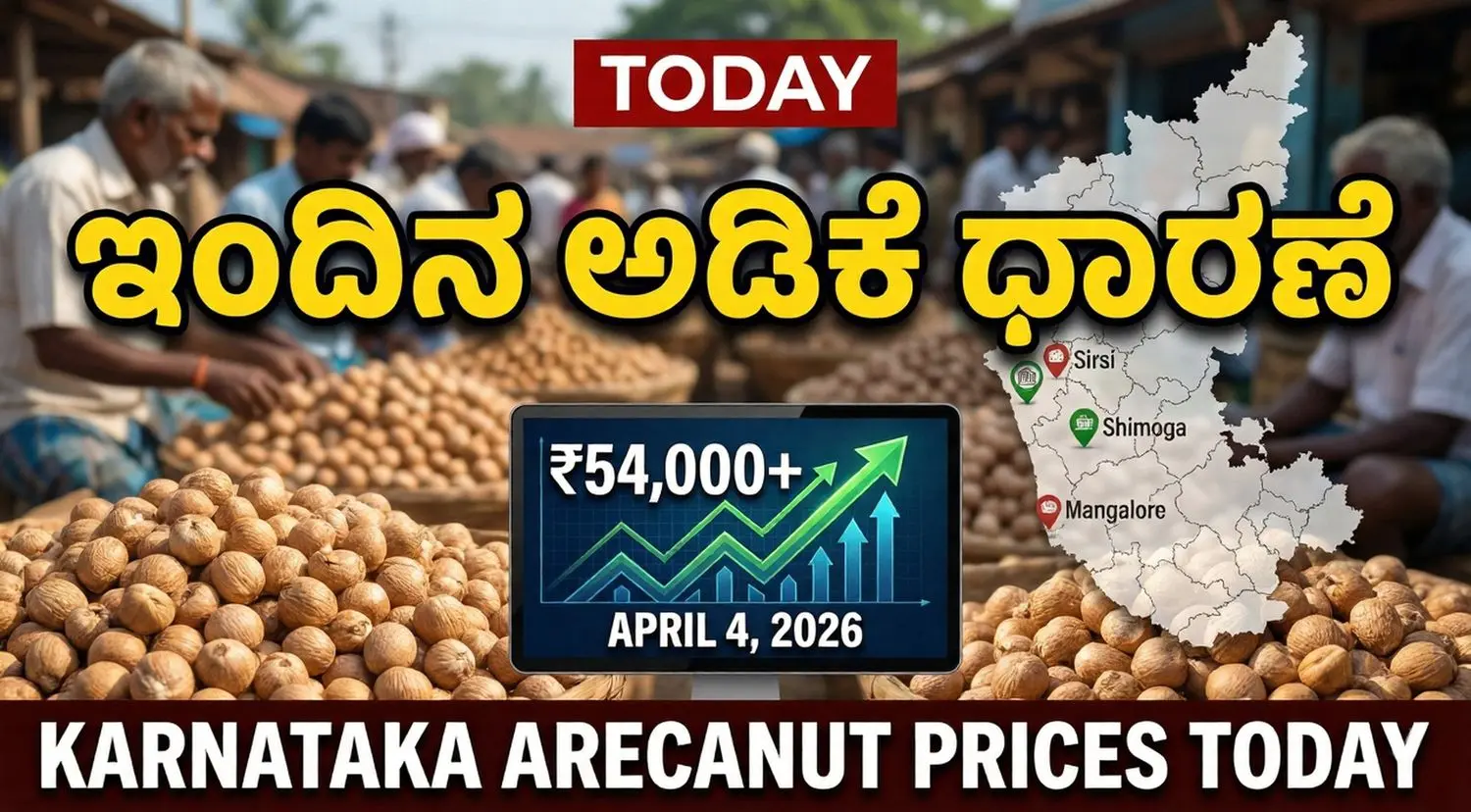 ಇಂದು ಏಪ್ರಿಲ್ 4, 2026 ರಂದು ಕರ್ನಾಟಕದ ವಿವಿಧ ಎಪಿಎಂಸಿ (APMC) ಮಾರುಕಟ್ಟೆಗಳಲ್ಲಿ ಅಡಿಕೆಯ ಕನಿಷ್ಠ ಮತ್ತು ಗರಿಷ್ಠ ಬೆಲೆಗಳ ಸಂಪೂರ್ಣ ಪಟ್ಟಿ ಇಲ್ಲಿದೆ. ರೈತರು ತಮ್ಮ ಉತ್ಪನ್ನಗಳನ್ನು ಮಾರುಕಟ್ಟೆಗೆ ತರುವ ಮುನ್ನ ಈ ದರಗಳನ್ನು ಗಮನಿಸುವುದು ಸೂಕ್ತ.