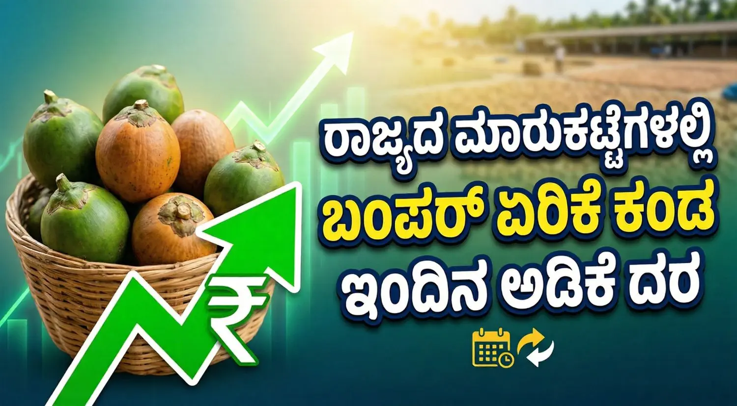 ಅಡಿಕೆ ಬೆಳೆಗಾರರಿಗೆ ಸಿಹಿಸುದ್ದಿ: ರಾಜ್ಯದ ಮಾರುಕಟ್ಟೆಗಳಲ್ಲಿ ಬಂಪರ್ ಏರಿಕೆ ಕಂಡ ಇಂದಿನ ಅಡಿಕೆ ದರ ಎಲ್ಲೆಲ್ಲಿ ಎಷ್ಟಿದೆ.?