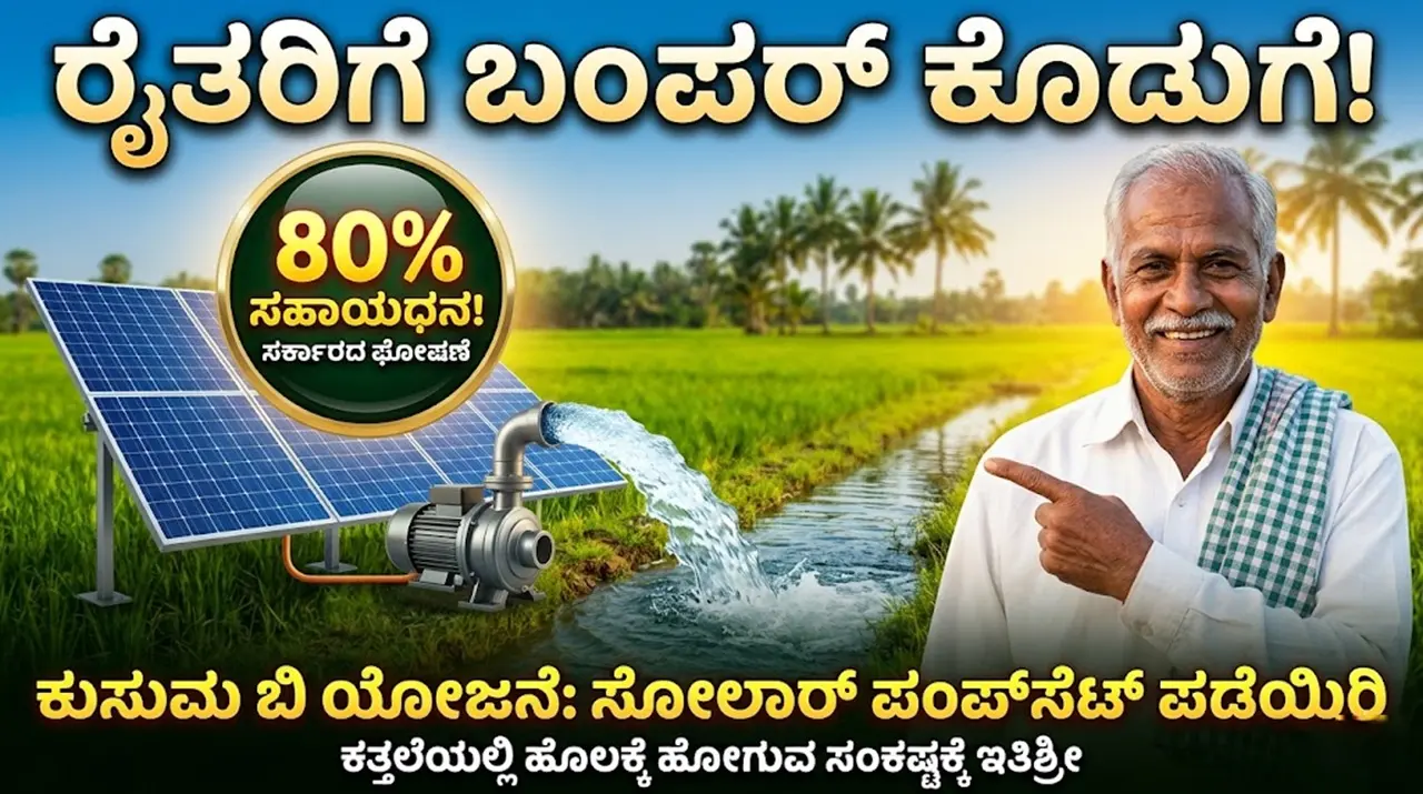 ಕರ್ನಾಟಕದ ಕೃಷಿ ವಲಯದಲ್ಲಿ ಈಗ ಹೊಸ ಸಂಚಲನ ಮೂಡಿದೆ. ಹಗಲು ವೇಳೆ ಸಮರ್ಪಕ ವಿದ್ಯುತ್ ಇಲ್ಲದೆ ಪರದಾಡುತ್ತಿದ್ದ ರೈತಬಾಂಧವರಿಗೆ ನೆರವಾಗಲು ಸರ್ಕಾರವು ಕುಸುಮ ಬಿ ಯೋಜನೆ (Kusum-B Scheme) ಅಡಿಯಲ್ಲಿ ಸೋಲಾರ್ ಪಂಪ್‌ಸೆಟ್‌ಗಳನ್ನು ಅಳವಡಿಸಿಕೊಳ್ಳಲು ಭಾರಿ ಮೊತ್ತದ ಸಹಾಯಧನವನ್ನು ಘೋಷಿಸಿದೆ. ಈ ಯೋಜನೆಯು ರೈತರ ಆರ್ಥಿಕ ಹೊರೆಯನ್ನು ತಗ್ಗಿಸುವುದಲ್ಲದೆ, ಸುಸ್ಥಿರ ಕೃಷಿಗೆ (Sustainable Agriculture) ಹೊಸ ಭಾಷ್ಯ ಬರೆಯುವ ನಿರೀಕ್ಷೆಯಿದೆ.