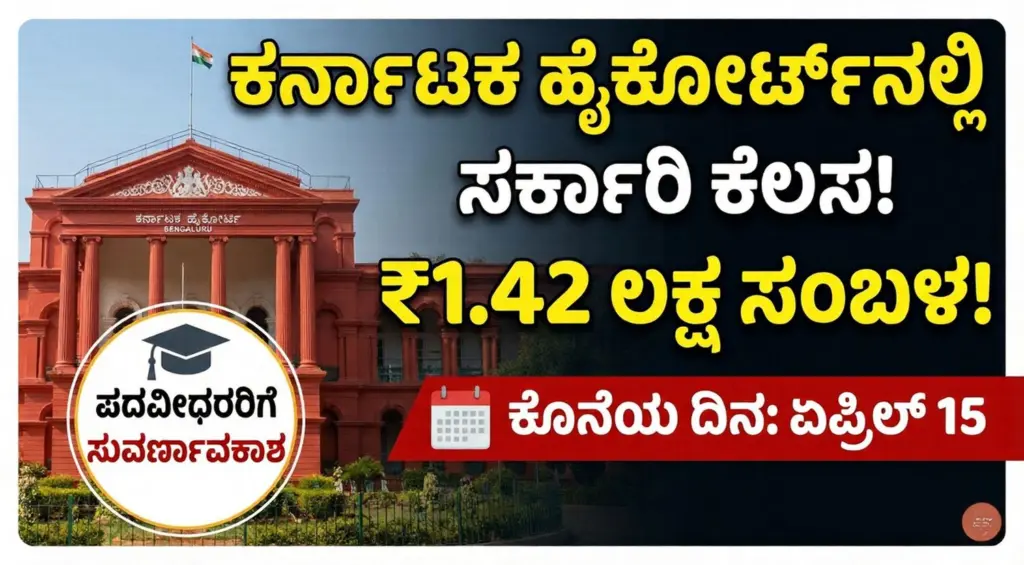 ಕರ್ನಾಟಕ ಹೈಕೋರ್ಟ್‌ ನೇಮಕಾತಿ 2026: ಪದವೀಧರರಿಗೆ 70 ಹುದ್ದೆಗಳ ಅವಕಾಶ, 1.42 ಲಕ್ಷದವರೆಗೆ ಸಂಬಳ!