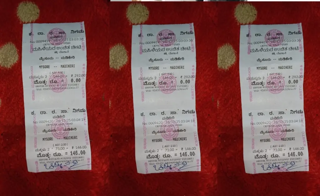 ಹೌದು, ಮೈಸೂರು – ಮಡಿಕೇರಿಗೆ ಹೋಗುವ ಕೆಎಸ್ ಆರ್ ಟಿಸಿ ಬಸ್ ನಲ್ಲಿ ಪ್ರಯಾಣಿಕ ತನ್ನ ಜೊತೆ ಬೆಕ್ಕಿನ ಮರಿಯನ್ನು ತೆಗೆದುಕೊಂಡು ಹೋಗುತ್ತಿದ್ದರು. ಈ ವೇಳೆ ನಿರ್ವಾಹಕ ಬೆಕ್ಕಿನ ಮರಿಗೂ ಆಫ್ ಟಿಕೆಟ್ ನೀಡಿದ್ದಾರೆ.