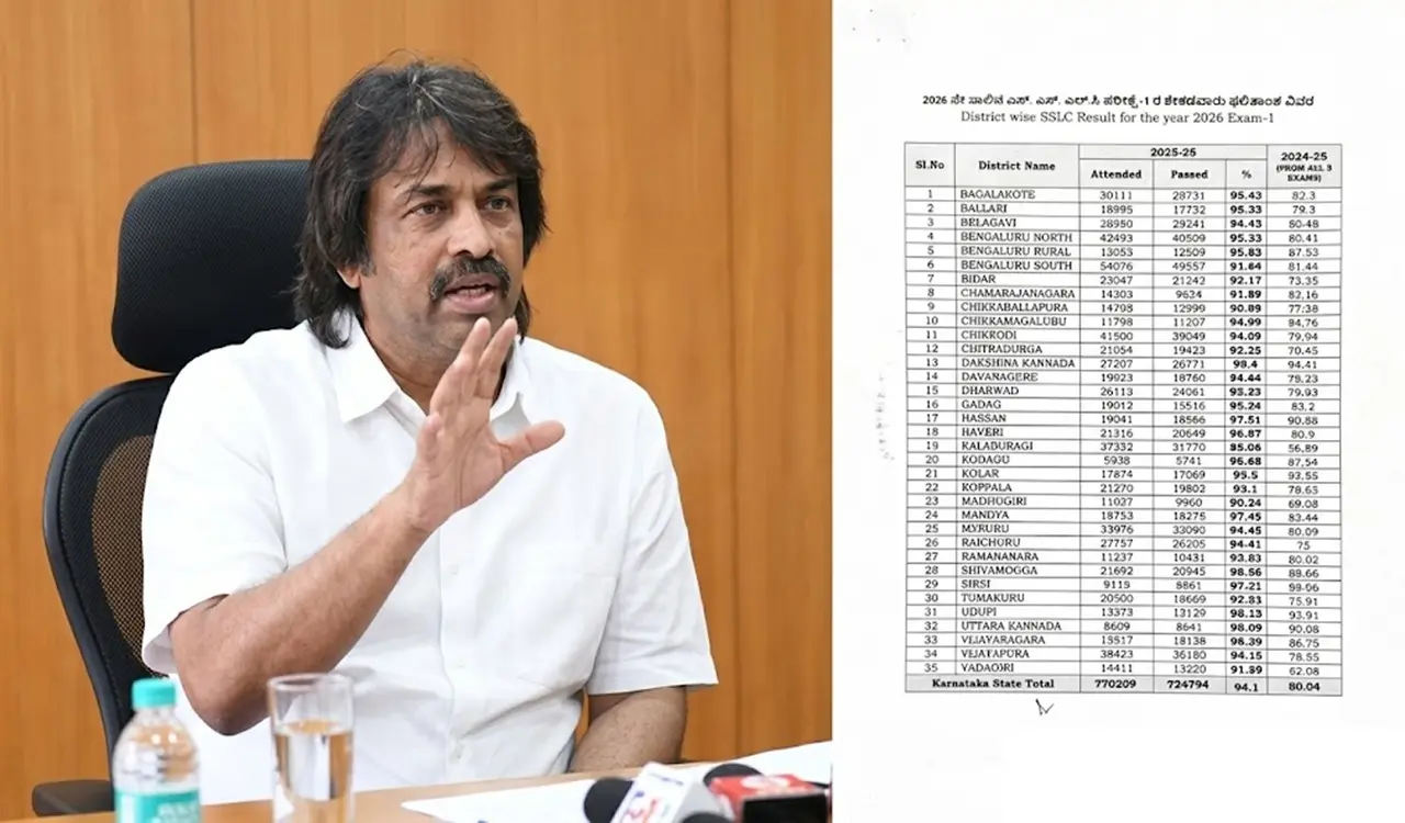 ಬೆಂಗಳೂರು : ರಾಜ್ಯದ ಲಕ್ಷಾಂತರ ವಿದ್ಯಾರ್ಥಿಗಳು ಮತ್ತು ಪೋಷಕರು ಕಾತರದಿಂದ ಕಾಯುತ್ತಿದ್ದ 2025-26ನೇ ಸಾಲಿನ ಎಸ್ಎಸ್ಎಲ್ಸಿ ಪರೀಕ್ಷೆಯ ಫಲಿತಾಂಶ (SSLC Examination Result) ಇಂದು ಅಧಿಕೃತವಾಗಿ ಹೊರಬಿದ್ದಿದೆ. ಈ ವರ್ಷದ ಫಲಿತಾಂಶದಲ್ಲಿ ಕರಾವಳಿ ಜಿಲ್ಲೆಗಳ ಪಾರಮ್ಯ ಮುಂದುವರಿದಿದ್ದು, ದಕ್ಷಿಣ ಕನ್ನಡ (Dakshina Kannada) ಜಿಲ್ಲೆಯು ರಾಜ್ಯಕ್ಕೇ ಪ್ರಥಮ ಸ್ಥಾನವನ್ನು ಅಲಂಕರಿಸಿದೆ. ಏಪ್ರಿಲ್ 23ರ ಗುರುವಾರ ಮಧ್ಯಾಹ್ನ ಶಿಕ್ಷಣ ಸಚಿವ ಮಧು ಬಂಗಾರಪ್ಪ (Madhu Bangarappa) ಅವರು ಸುದ್ದಿಗೋಷ್ಠಿ ನಡೆಸಿ ಈ ಫಲಿತಾಂಶದ ವಿವರಗಳನ್ನು ಹಂಚಿಕೊಂಡಿದ್ದಾರೆ. ರಾಜ್ಯದ ಶೈಕ್ಷಣಿಕ ಇತಿಹಾಸದಲ್ಲಿ ಈ ಬಾರಿ ಉತ್ತಮ ಸಾಧನೆಯನ್ನು ದಾಖಲಿಸಲಾಗಿದ್ದು, ವಿದ್ಯಾರ್ಥಿಗಳ ಕಠಿಣ ಪರಿಶ್ರಮಕ್ಕೆ ತಕ್ಕ ಪ್ರತಿಫಲ ದೊರೆತಿದೆ.
