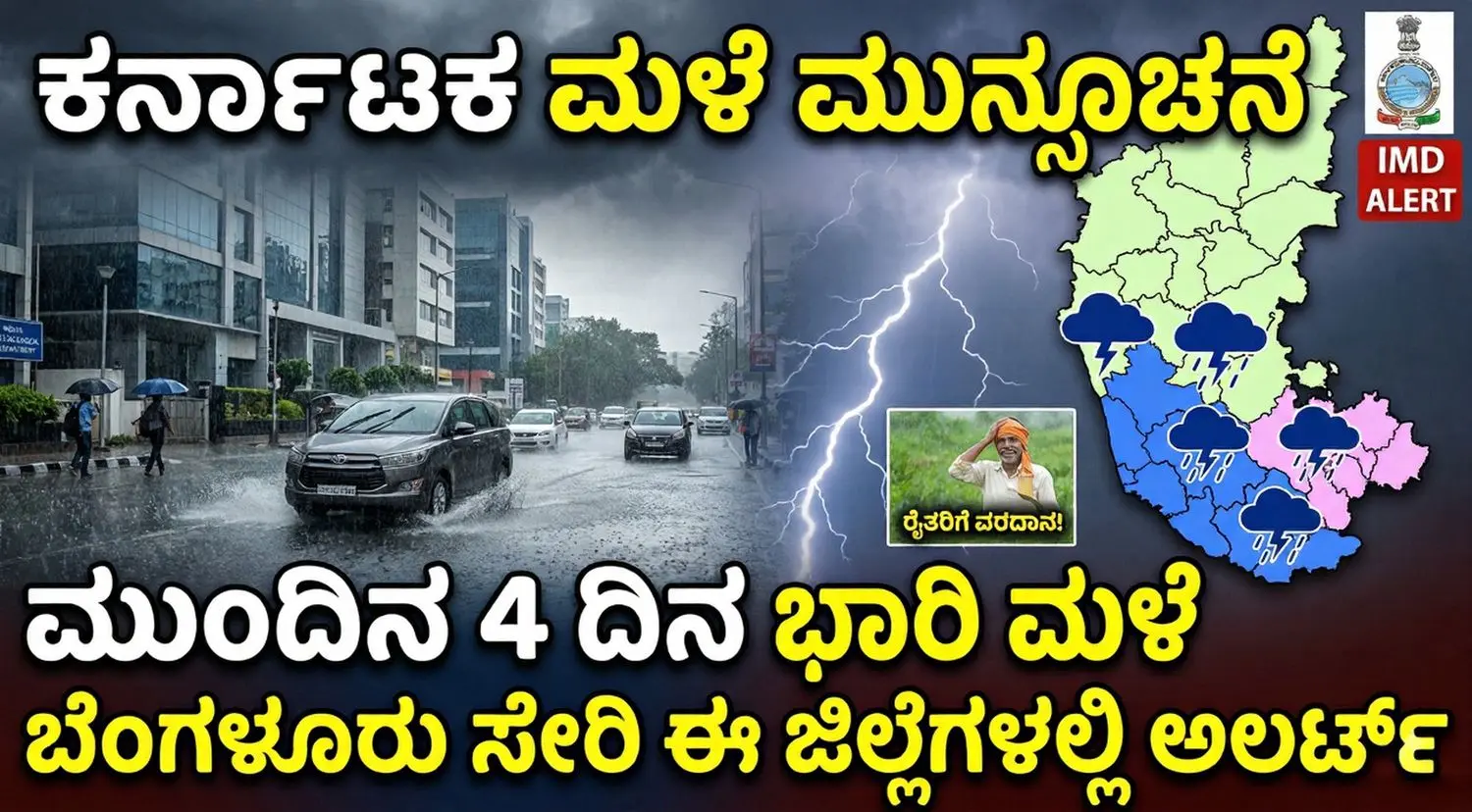ಕರ್ನಾಟಕ ಮಳೆ ಮುನ್ಸೂಚನೆ 2026: ವಾಯುಭಾರ ಕುಸಿತದ ಎಫೆಕ್ಟ್, ಬೆಂಗಳೂರು ಸೇರಿದಂತೆ ಈ ಜಿಲ್ಲೆಗಳಲ್ಲಿ ಮುಂದಿನ 4 ದಿನ ಭಾರಿ ಮಳೆ