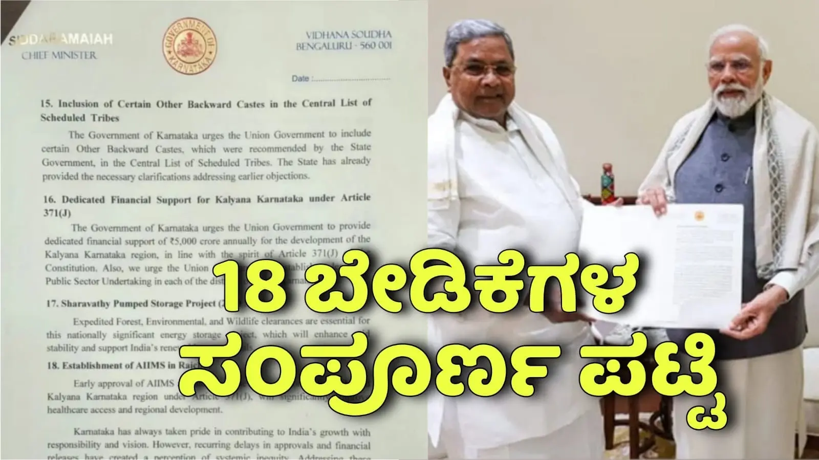 ಕರ್ನಾಟಕದ ಸಮಗ್ರ ಅಭಿವೃದ್ಧಿಗೆ ಮುಖ್ಯಮಂತ್ರಿಗಳ 18 ಸೂತ್ರಗಳು: ಪ್ರಧಾನಿ ಮೋದಿಗೆ ಸಿದ್ದರಾಮಯ್ಯ ಸಲ್ಲಿಸಿದ ಬೇಡಿಕೆಗಳ ಪಟ್ಟಿಯ ಸಂಪೂರ್ಣ ವಿವರ