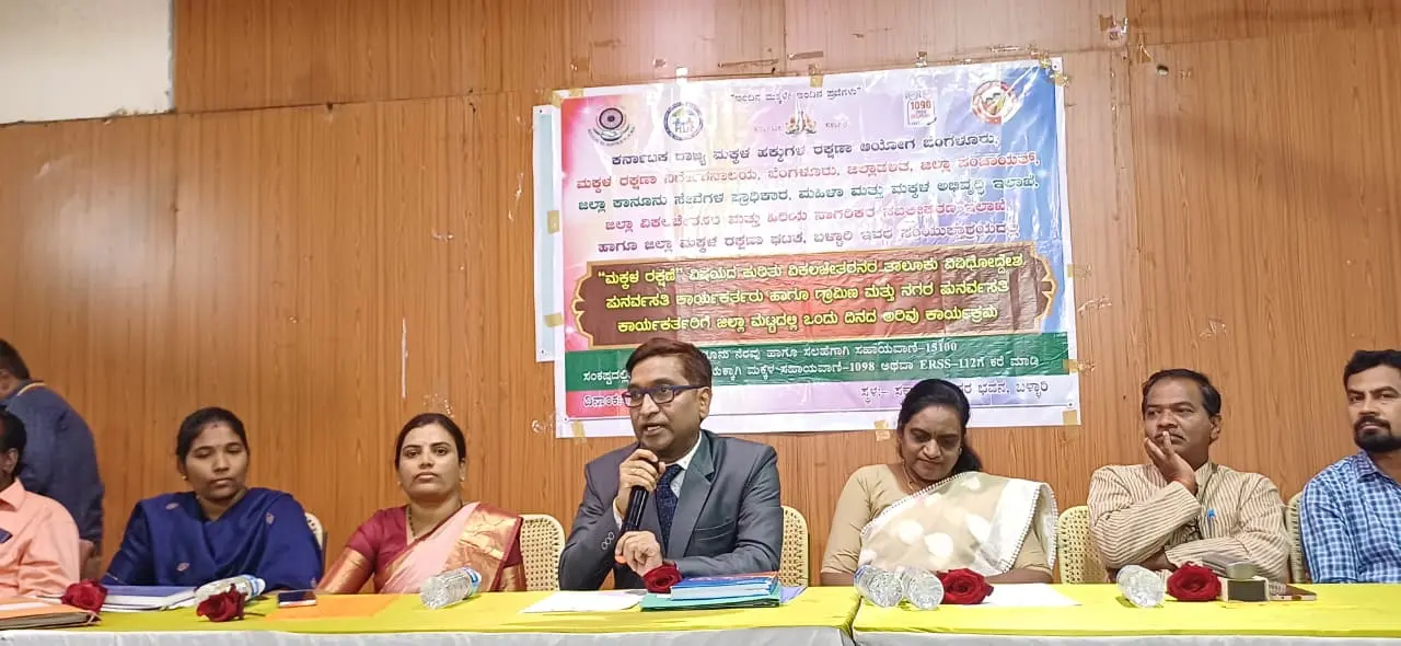ರಾಜ್ಯ ಮಕ್ಕಳ ಹಕ್ಕುಗಳ ರಕ್ಷಣಾ ಆಯೋಗ ಬೆಂಗಳೂರು, ಮಕ್ಕಳ ಹಕ್ಕುಗಳ ನಿರ್ದೇಶನಾಲಯ ಬೆಂಗಳೂರು, ಜಿಲ್ಲಾಡಳಿತ, ಜಿಲ್ಲಾ ಪಂಚಾಯತ್, ಜಿಲ್ಲಾ ಕಾನೂನು ಸೇವೆಗಳ ಪ್ರಾಧಿಕಾರ, ಮಹಿಳಾ ಮತ್ತು ಮಕ್ಕಳ ಅಭಿವೃದ್ಧಿ ಇಲಾಖೆ, ಜಿಲ್ಲಾ ವಿಕಲಚೇತನರ ಮತ್ತು ಹಿರಿಯ ನಾಗರಿಕರ ಸಬಲೀಕರಣ ಇಲಾಖೆ ಹಾಗೂ ಜಿಲ್ಲಾ ಮಕ್ಕಳ ರಕ್ಷಣಾ ಘಟಕ ಬಳ್ಳಾರಿ ಇವರ ಸಂಯುಕ್ತಾಶ್ರಯದಲ್ಲಿ ವಿಕಲಚೇತನರ ವಿವಿಧೋದ್ದೇಶ ಪುನರ್ವಸತಿ ಕಾರ್ಯಕರ್ತರು ಹಾಗೂ ಗ್ರಾಮೀಣ ಮತ್ತು ನಗರ ಪುನರ್ವಸತಿ ಕಾರ್ಯಕರ್ತರಿಗೆ ನಗರದ ಜಿಲ್ಲಾಡಳಿತ ಆವರಣದ ಸರ್ಕಾರಿ ನೌಕರರ ಭವನದಲ್ಲಿ ಶನಿವಾರ ಆಯೋಜಿಸಿದ್ದ ಮಕ್ಕಳ ರಕ್ಷಣೆ ವಿಷಯದ ಕುರಿತು ಜಿಲ್ಲಾ ಮಟ್ಟದ ಒಂದು ದಿನದ ಅರಿವು ಕಾರ್ಯಕ್ರಮ ಉದ್ಘಾಟಿಸಿ ಅವರು ಮಾತನಾಡಿದರು.