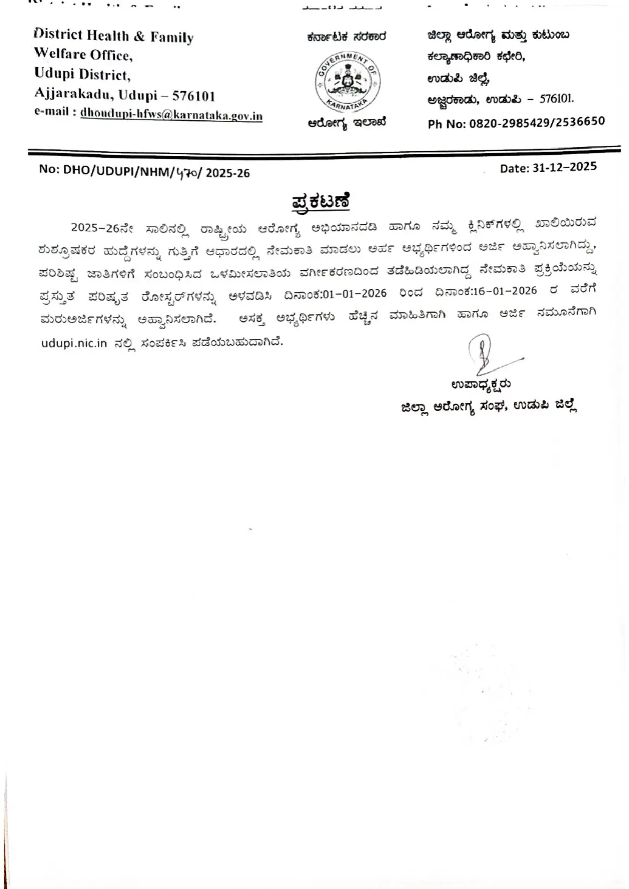 ನೀವು ಎಲ್ಲಾ ಅರ್ಹತಾ ಮಾನದಂಡಗಳನ್ನು ಪೂರೈಸುತ್ತೀರಿ ಎಂದು ಖಚಿತಪಡಿಸಿಕೊಳ್ಳಲು DHFWS ಉಡುಪಿ ನೇಮಕಾತಿ ಅಧಿಸೂಚನೆ 2026 ಅನ್ನು ಎಚ್ಚರಿಕೆಯಿಂದ ಪರಿಶೀಲಿಸಿ. ನೇಮಕಾತಿ ಲಿಂಕ್ ಅನ್ನು ಕೆಳಗೆ ನೀಡಲಾಗಿದೆ.