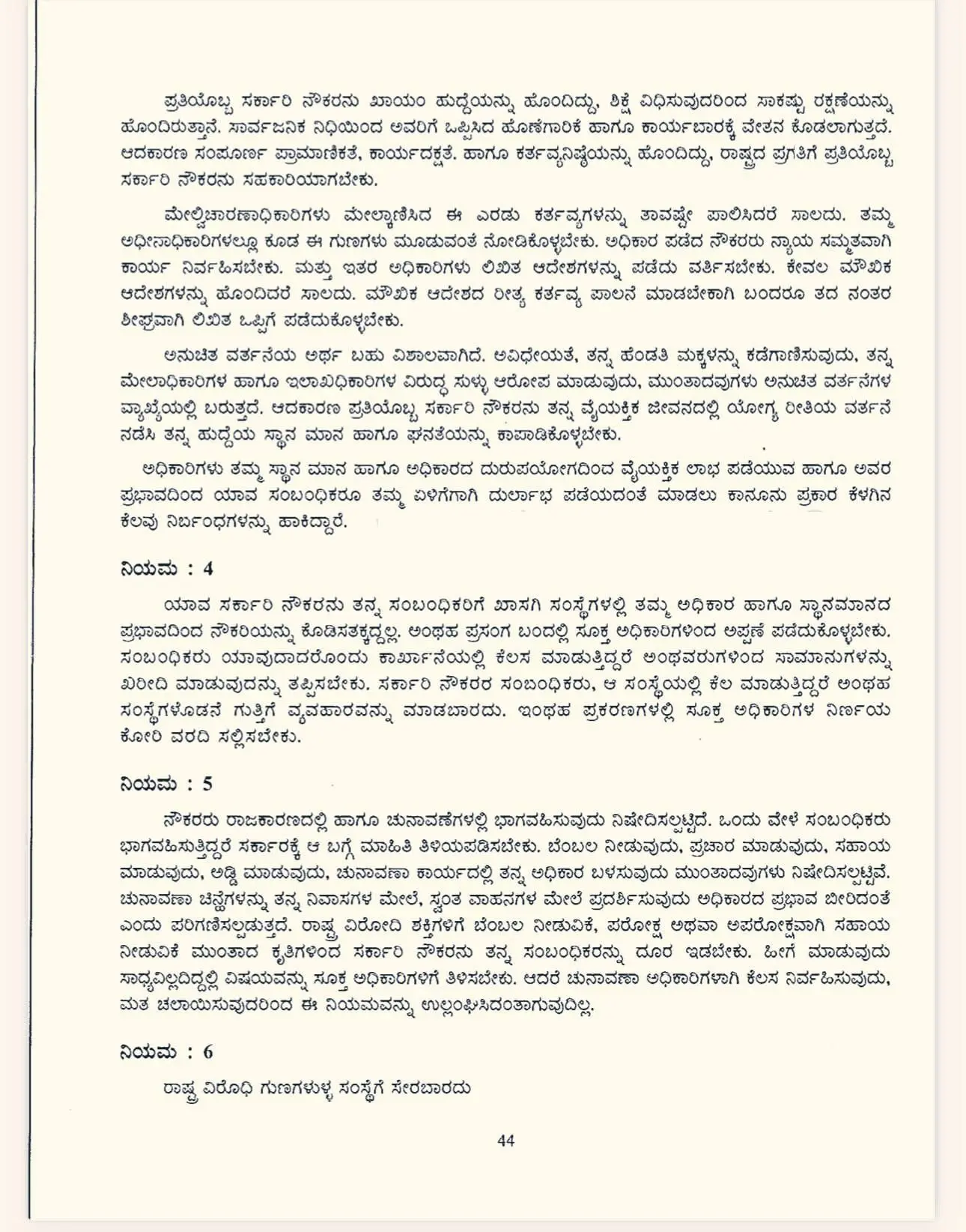 ಬೆಂಗಳೂರು : ರಾಜ್ಯ ಸರ್ಕಾರಿ ನೌಕರರೇ ಗಮನಿಸಿ. ಕರ್ನಾಟಕ ನಾಗರಿಕ ಸೇವೆ (ವರ್ತನೆ) ನಿಯಮಗಳು 1966ರ ಮುಖ್ಯಾಂಶಗಳು ಉಲ್ಲಂಘನೆಗೆ ವಿಧಿಸಬಹುದಾದ ದಂಡನೆಗಳು ಹಾಗೂ ಕೆ.ಸಿ.ಎಸ್. (ಸಿಸಿಎ) ನಿಯಮಗಳ ಸ್ಕೂಲ ಪರಿಚಯ ಇಲ್ಲಿದೆ.