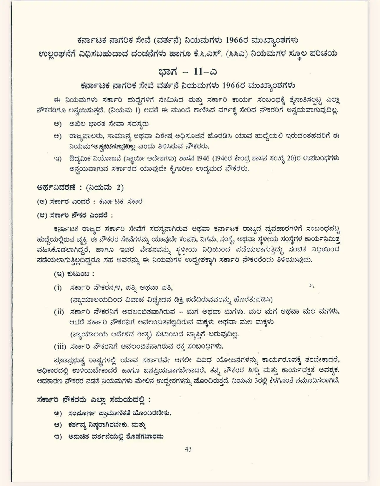 ಕರ್ನಾಟಕ ರಾಜ್ಯದ ಸರ್ಕಾರಿ ಸೇವೆಗೆ ಸದಸ್ಯನಾಗಿರುವ ಅಥವಾ ಕರ್ನಾಟಕ ರಾಜ್ಯದ ವ್ಯವಹಾರಗಳಿಗೆ ಸಂಬಂಧಪಟ್ಟ ಹುದ್ದೆಯಲ್ಲಿರುವ ವ್ಯಕ್ತಿ. ಈ ನೌಕರರ ಸೇವೆಗಳನ್ನು ಯಾವುದೇ ಕಂಪನಿ, ನಿಗಮ, ಸಂಸ್ಥೆ, ಅಥವಾ ಸ್ಥಳೀಯ ಸಂಸ್ಥೆಗಳ ಕಾರ್ಯನಿಮಿತ್ತ ವಹಿಸಿಕೊಡಲಾಗಿದ್ದರೆ, ಹಾಗೂ ಇವರ ವೇತನವನ್ನು ಸ್ಥಳೀಯ ನಿಧಿಯಿಂದ ಪಡೆಯಲಾಗುತ್ತಿದ್ದು ಸಂಚಿತ ನಿಧಿಯಿಂದ ಪಡೆಯಲಾಗುತ್ತಿಲ್ಲದಿದ್ದರೂ ಸಹ ಅವರನ್ನು ಈ ನಿಯಮಗಳ ಉದ್ದೇಶಕ್ಕಾಗಿ ಸರ್ಕಾರಿ ನೌಕರರೆಂದು ತಿಳಿಯುವುದು.