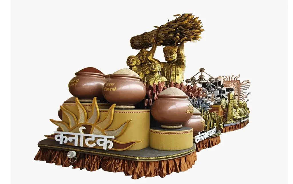 ಸ್ತಬ್ಧಚಿತ್ರದಲ್ಲಿ ಏನಿರಲಿದೆ: ಸ್ತಬ್ಧಚಿತ್ರದ ಮುಂಭಾಗದಲ್ಲಿ ಉದಯಿಸುತ್ತಿರುವ ಸೂರ್ಯ ನಿರಂತರ ಪ್ರಗತಿ ಮತ್ತು ಚಲನಶೀಲತೆಯ ಸಂಕೇತವಾಗಿ ಹೊಳೆಯುತ್ತಿದೆ. ದೊಡ್ಡ ಮಡಿಕೆಗಳಲ್ಲಿ ಪ್ರದರ್ಶಿಸಲಾದ ವಿವಿಧ ಸಿರಿಧಾನ್ಯಗಳು ಕೃಷಿ ಸಮೃದ್ಧಿಯನ್ನು ತೋರಿಸುತ್ತವೆ. ಬೆಳೆದ ಫಸಲನ್ನು ಎತ್ತಿಹಿಡಿದಿರುವ ರೈತ, ಆತನ ಪತ್ನಿ ಹಾಗೂ ಉಲ್ಲಾಸದಿಂದ ಕಾಣಿಸುತ್ತಿರುವ ಮಕ್ಕಳು ಗ್ರಾಮೀಣ ಶಕ್ತಿಯ ಜೀವಂತ ಚಿತ್ರಣವಾಗಿದ್ದಾರೆ.