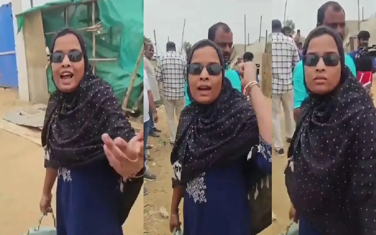 ಘಟನೆ ಹಿನ್ನೆಲೆ : ಅಕ್ರಮ ವಲಸಿಗರ ತೆರವು ಕಾರ್ಯಾಚರಣೆ ಮಾಡುವಾಗ ಇಂಥದ್ದೊಂದು ಘಟನೆ ನಡೆದಿದೆ. ಜೆಸಿಬಿ ಬಳಕಿ ಅಕ್ರಮ ಕಟ್ಟಡಗಳ ತೆರವು ಕಾರ್ಯಾಚರಣೆ ನಡೆಸುತ್ತಿದ್ದರು. ಈ ವೇಳೆ ಸ್ಥಳೀಯ ವ್ಯಕ್ತಿಯೊಬ್ಬ ಅದನ್ನು ವಿಡಿಯೋ ಮಾಡಿಕೊಳ್ಳುತ್ತಿದ್ದ. ಈ ವೇಳೆ ಮುಸ್ಲಿಂ ಮಹಿಳೆಯೊಬ್ಬಳು ಕೂಲಿಂಗ್ ಗ್ಲಾಸ್ ಹಾಕಿಕೊಂಡು ಅಲ್ಲಿಂದ ಪಾಸ್ ಆಗುತ್ತಾಳೆ.
