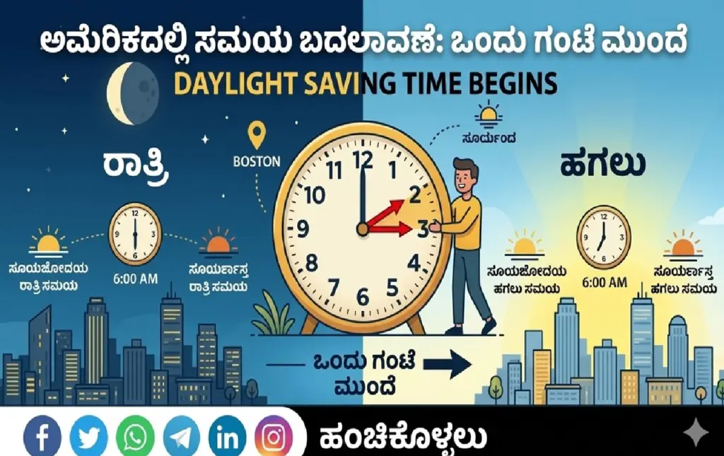 - ಅಮೆರಿಕದಲ್ಲಿ ಡೇಲೈಟ್ ಸೇವಿಂಗ್ ಟೈಮ್ ಯಾವಾಗ ಆರಂಭವಾಗುತ್ತದೆ?
